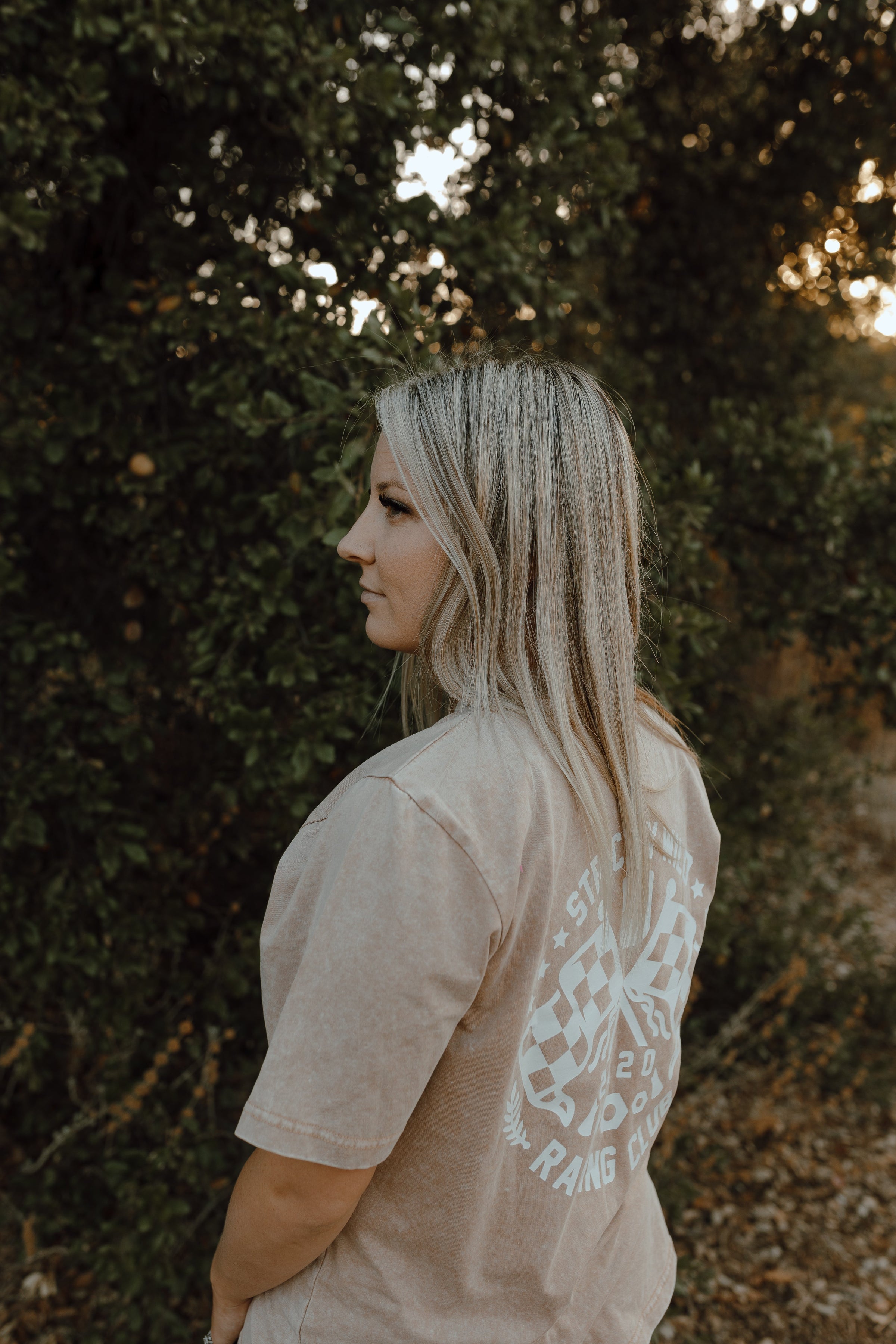 From the cool and classic neutrals to the bold and exciting Acid Wash, our tees are all things racing. We’ve got you covered for the track, the stands, or wherever the road takes you—because comfort and style should never be a pit stop!