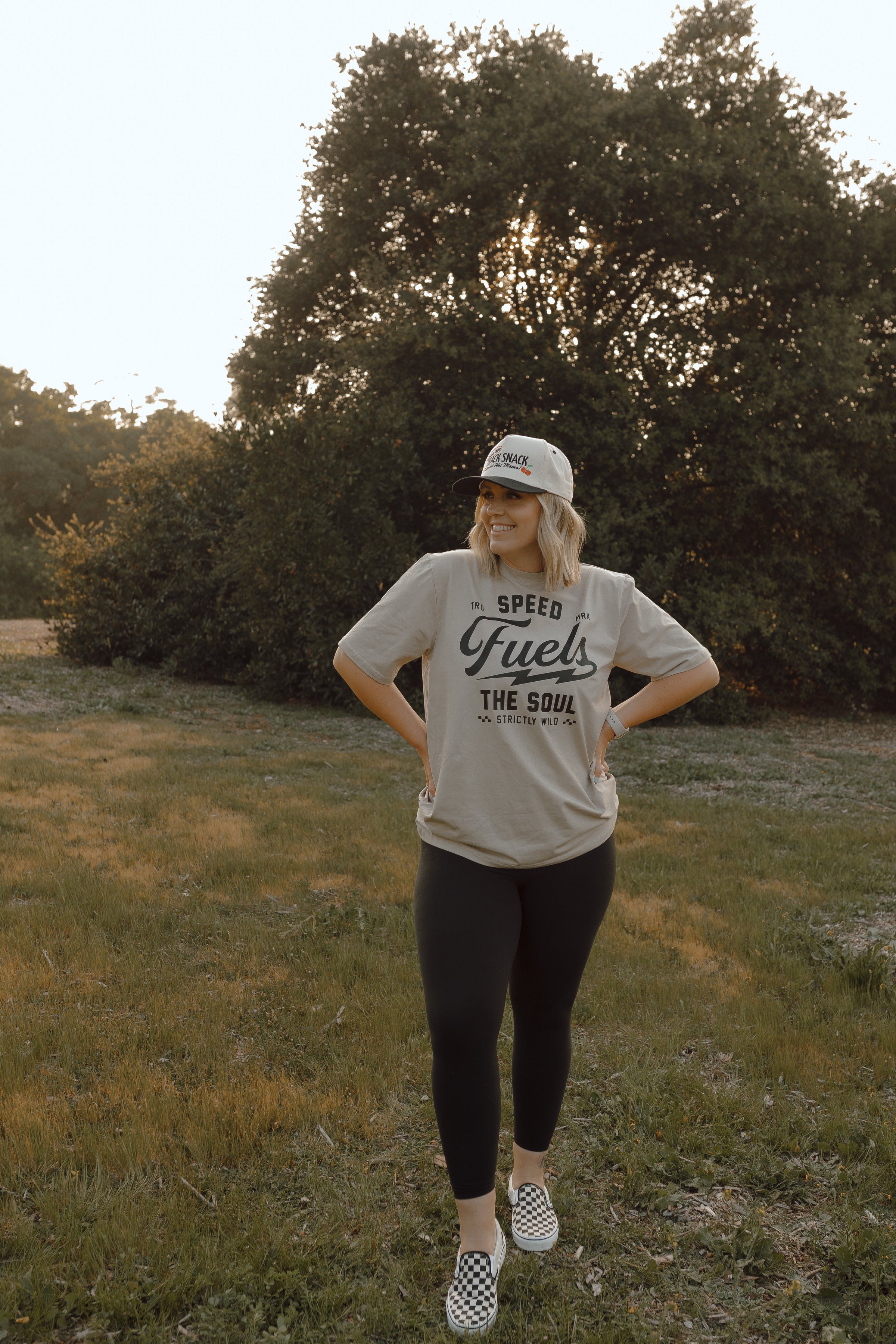 With its perfect adult fit, snapback closure, and curved brim, this hat ensures both comfort and flair as you cheer on your favorite racers. The tan crown paired with a sleek black brim gives it a trendy edge that stands out in the crowd. Gear up with our "Track Snack" Snapback Hat and make a bold statement trackside!
